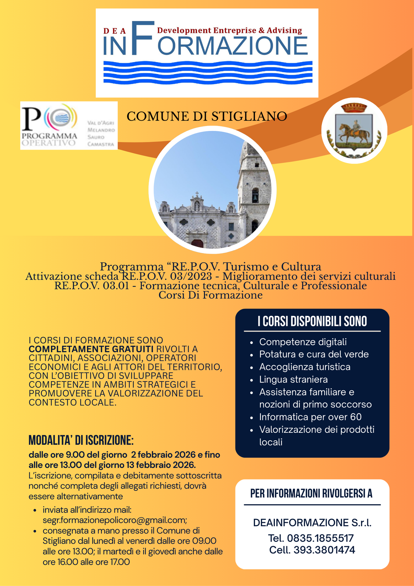 📞 Per informazioni: Deainformazione S.R.L. – Tel. +39 0835 185 5517 – Cell. +39 393 380 1474